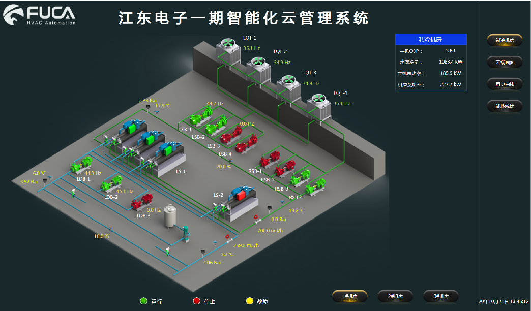 自學(xué)習(xí)設(shè)備運(yùn)行數(shù)據(jù),擬合設(shè)備性能曲線; 基于性能評(píng)估模型,結(jié)合需求預(yù)測(cè),采用前饋控制與反饋控制的融合,保障系統(tǒng)高效運(yùn)行。